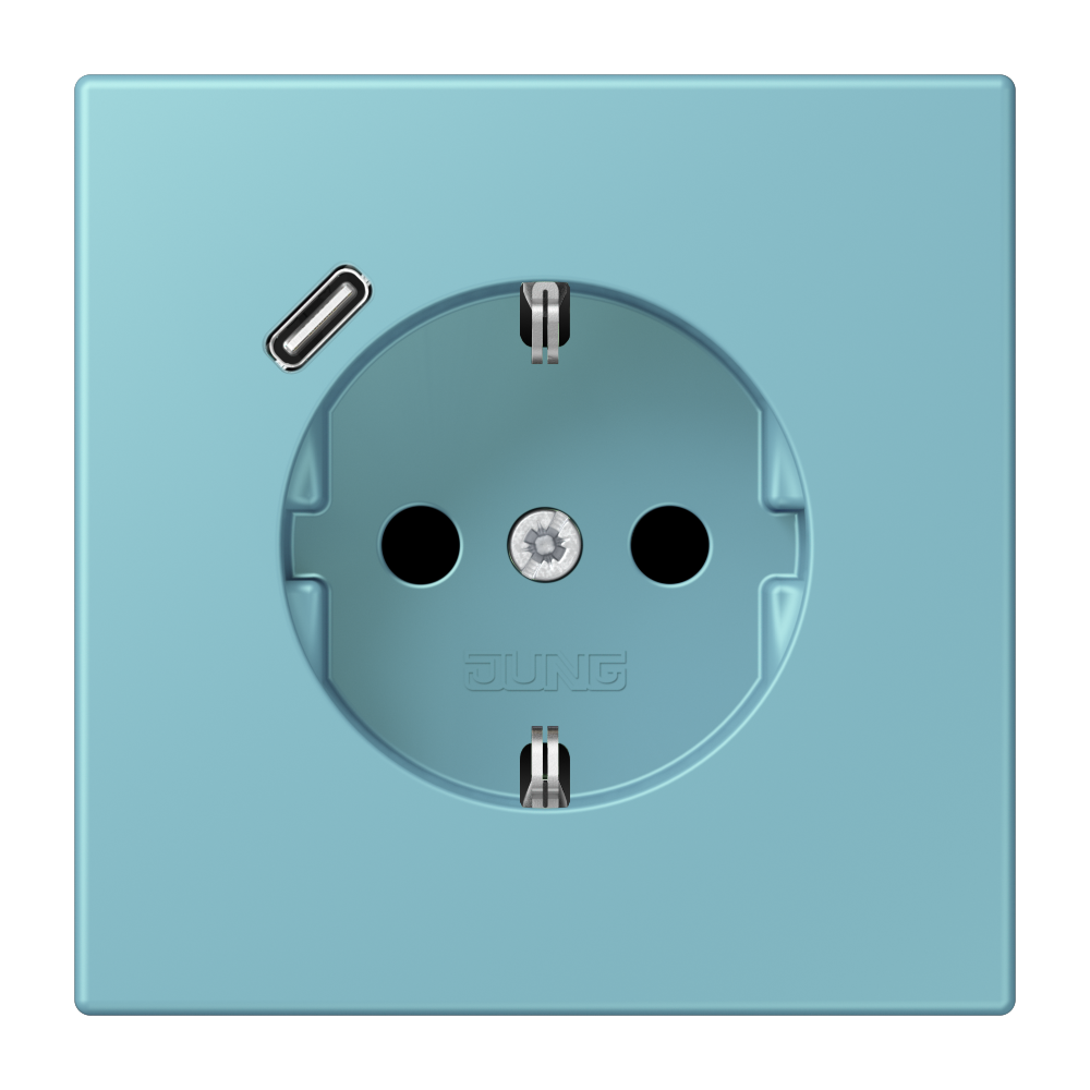 SCHUKO®-Steckdose, 16 A 250 V ~, mit USB-Ladegerät (JUNG Quick Charge®), 1 x Typ C, Safety Plus, Serie LS, céruléen moyen (32032)