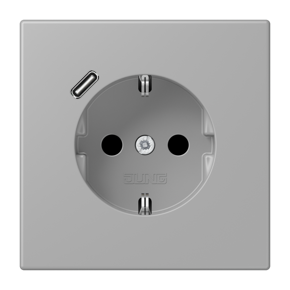 SCHUKO®-Steckdose, 16 A 250 V ~, mit USB-Ladegerät (JUNG Quick Charge®), 1 x Typ C, Safety Plus, Serie LS, gris moyen (32012)