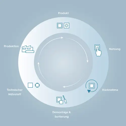 Die Idee kreislauffähiger Produkte bringt Klima- und Ressourcenschutz zusammen und stellt einen wichtigen Beitrag für mehr Nachhaltigkeit im Bauwesen dar. Aus diesem Grund haben wir die meist genutzten Einsätze und Schalterprogramme für konventionelle und smarte Gebäudetechnik einer umfangreichen Cradle-to-Cradle-Zertifizierung unterzogen.