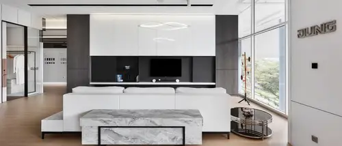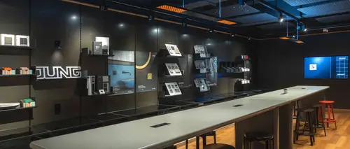 In den JUNG Showrooms und Ausstellungen haben Architekten, Fachplaner und interessierte Bauherren die Möglichkeit, Produkte und Gebäudetechnik in Funktion zu erleben – inklusive der vollen Funktionalität der JUNG Smart-Home-Systeme.