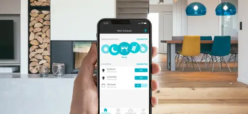 Mithilfe der App eNet SMART HOME bedienen Sie Ihr funkbasiertes Smart Home und nehmen sämtliche Einstellungen rund um Ihr Zuhause vor. Steuern Sie alle Geräte im Heimnetzwerk auch von unterwegs! Mit Ihrem Smartphone regulieren Sie die Beleuchtung, Jalousien und weitere Funktionen über eine sichere, VDE-zertifizierte Verbindung.