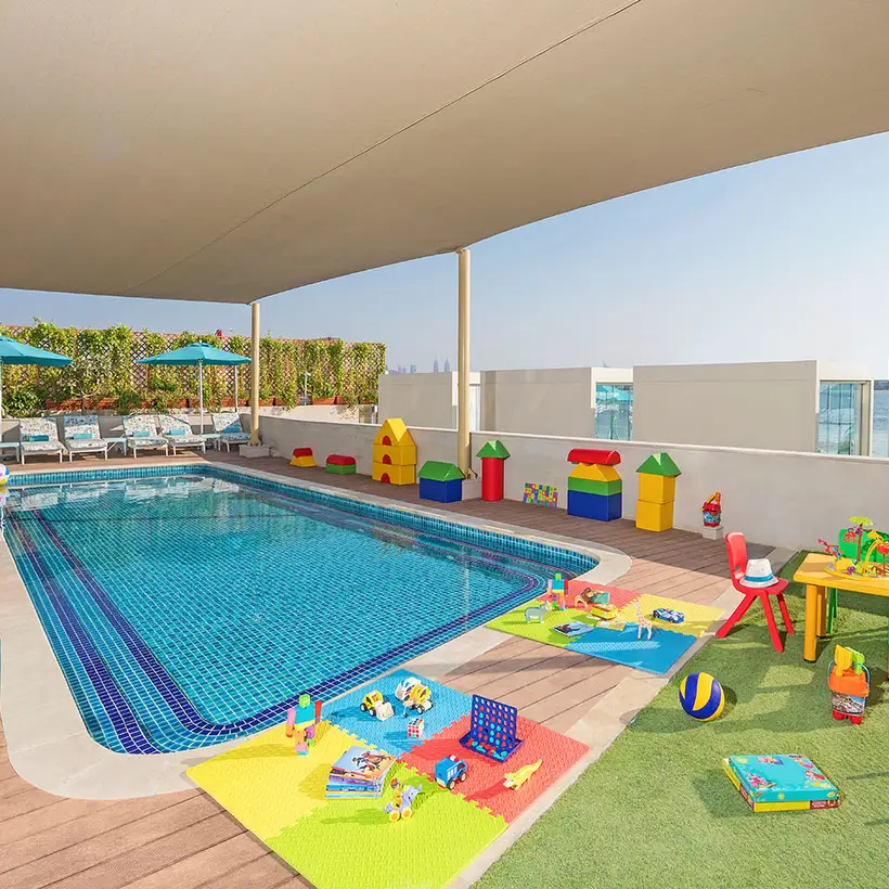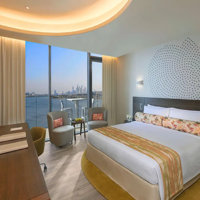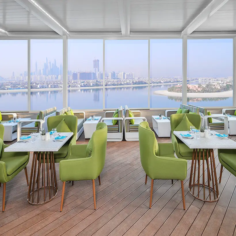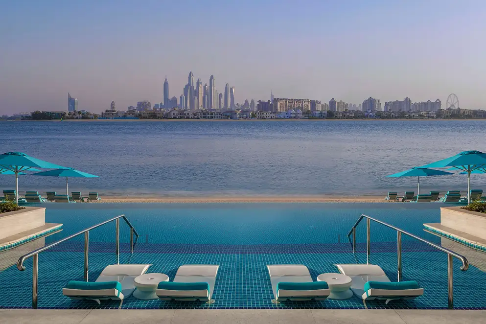 Das Resort liegt an der Küste von Palm Jumeirah's East Crescent und bietet 255 Zimmer und Suiten sowie vier Restaurants, einen Spa sowie ein Fitness Center. Die Zimmer sind in warmen Erdtönen gestaltet und laden zum Verweilen ein. Der Infinity-Pool erhebt sich über den unberührten Strand und klimatisierte Liegebereiche säumen den Wasserrand mit direkten Blick auf die Skyline von Dubai.