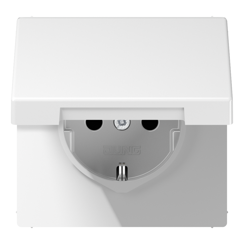 SCHUKO®-Steckdose, 16 A 250 V ~, Safety Plus, Klappdeckel, Thermoplast, Serie LS, alpinweiß