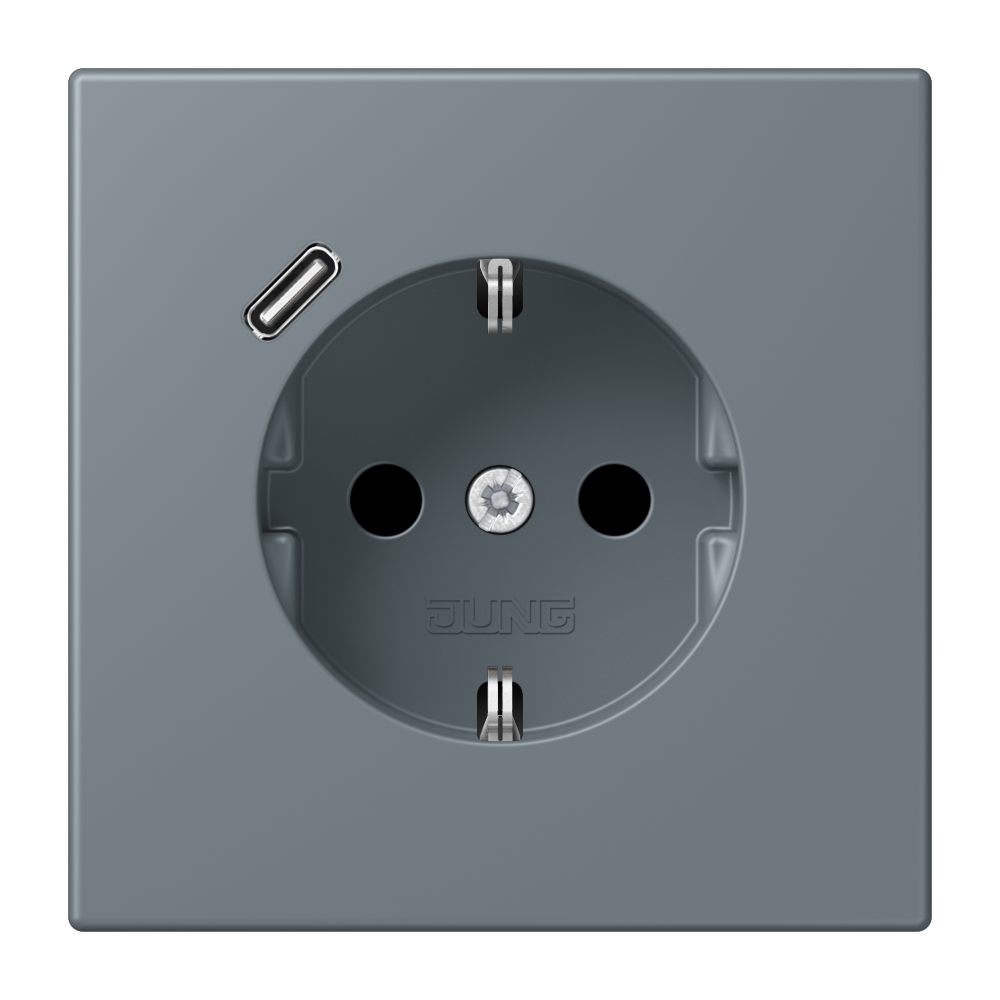 SCHUKO®-Steckdose, 16 A 250 V ~, mit USB-Ladegerät (JUNG Quick Charge®), 1 x Typ C, Safety Plus, Serie LS, gris 59 (4320H)