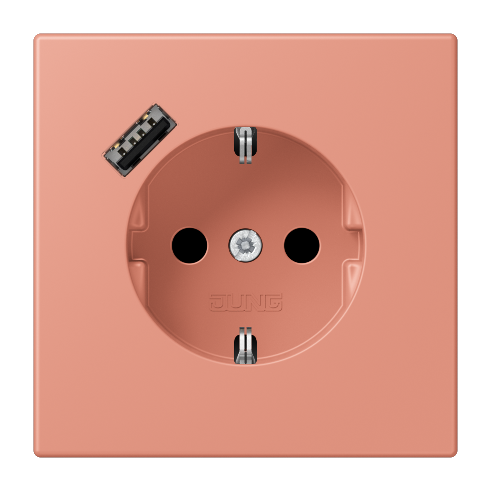 SCHUKO®-Steckdose, 16 A 250 V ~, mit USB-Ladegerät (JUNG Quick Charge®), 1 x Typ A, Safety Plus, Serie LS, l’ocre rouge moyen (32111)