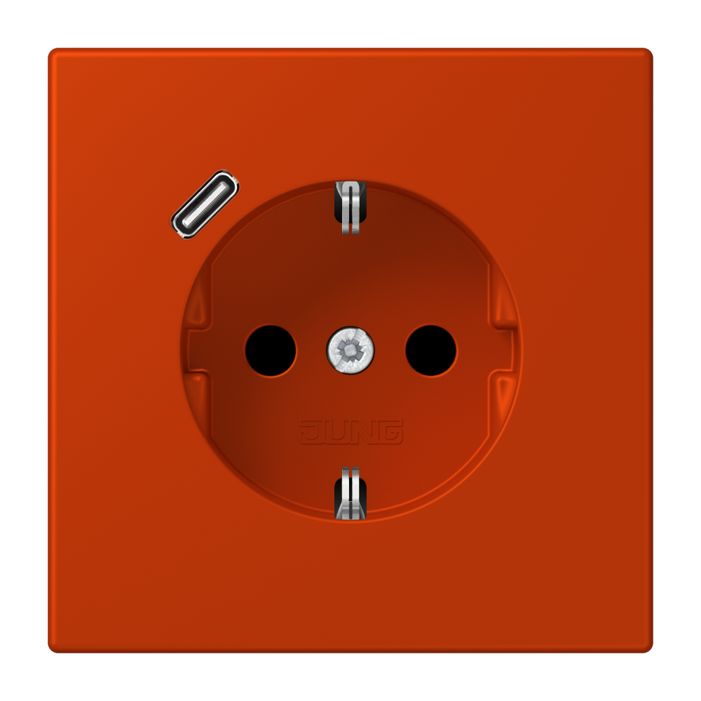 SCHUKO®-Steckdose, 16 A 250 V ~, mit USB-Ladegerät (JUNG Quick Charge®), 1 x Typ C, Safety Plus, Serie LS, rouge vermillon 59 (4320A)