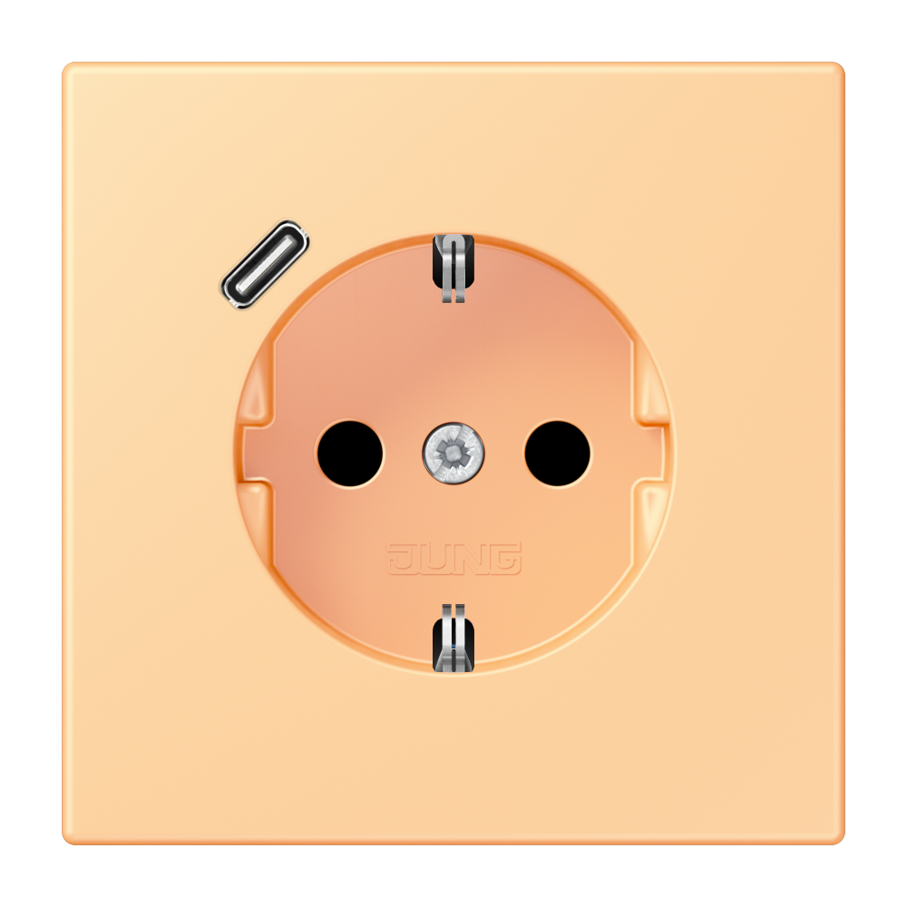 SCHUKO®-Steckdose, 16 A 250 V ~, mit USB-Ladegerät (JUNG Quick Charge®), 1 x Typ C, Safety Plus, Serie LS, terre sienne claire 59 (4320P)