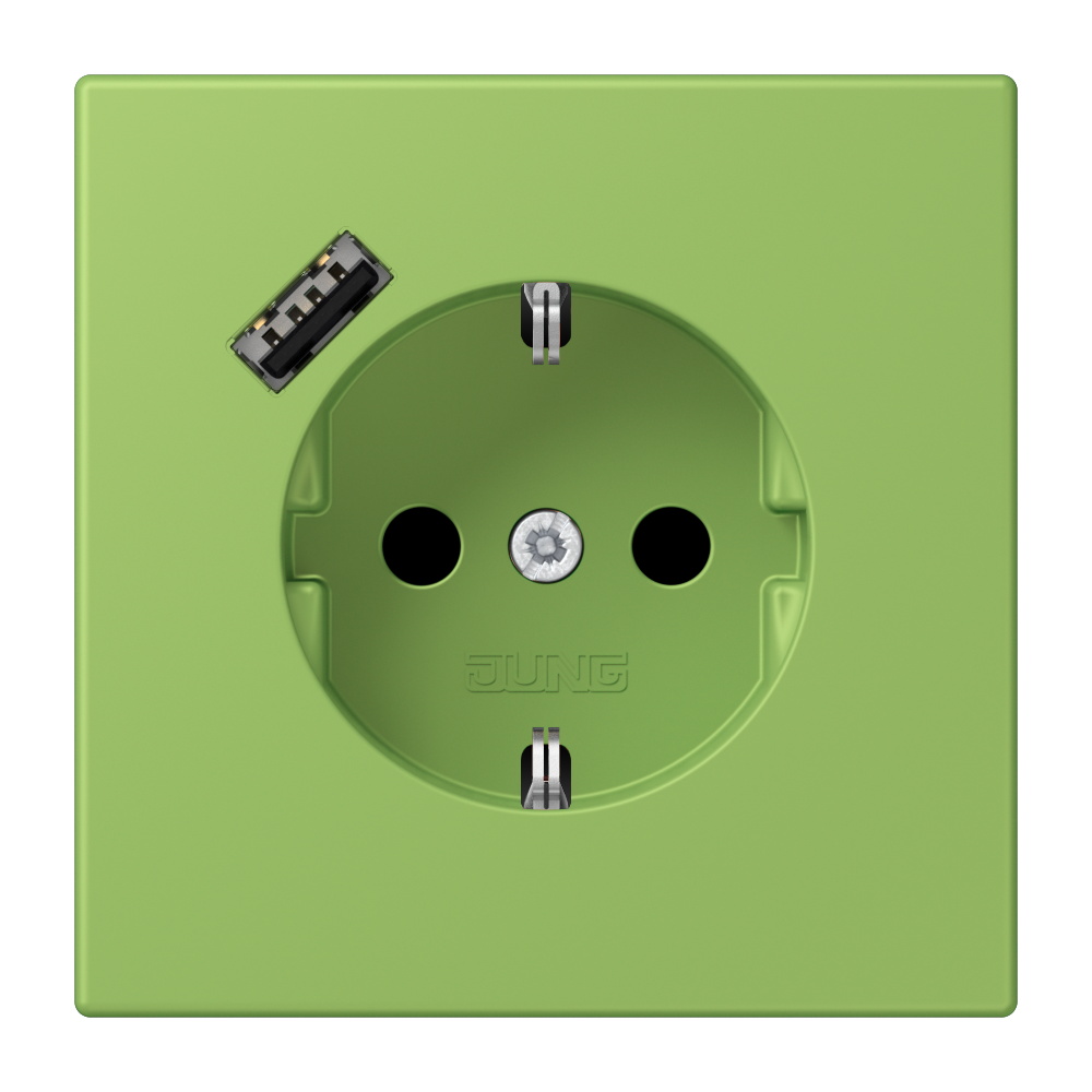 SCHUKO®-Steckdose, 16 A 250 V ~, mit USB-Ladegerät (JUNG Quick Charge®), 1 x Typ A, Safety Plus, Serie LS, vert 31 (32051)