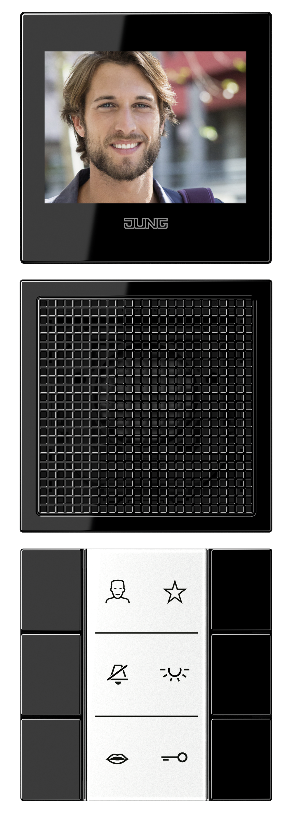 - Rufen, Sprechen, Sehen, Türöffnen, Licht, Etagenruf, Schalt-/Steuerfunktionen und interne Kommunikation