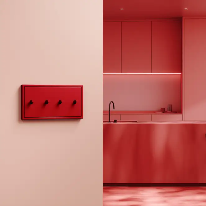 The frames of the LS 1912 in Les Couleurs® Le Corbusier® switch range are available in 1-gang to 4-gang versions. Depending on the desired effect in the room, they can be installed horizontally or vertically.
