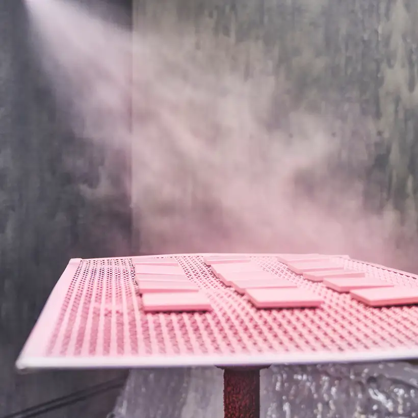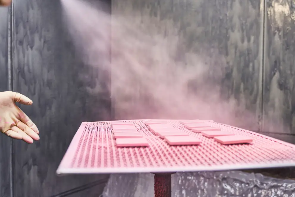 First, all unwanted impurities and dust are removed under running water. Then, the switch is given its colour with a first coat. After drying, a second coat is then applied for the velvety touch and matt appearance.