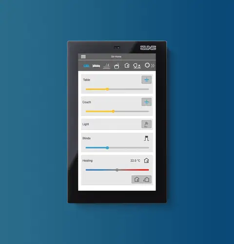 Visualise and control the entire building technology centrally using one device with JUNG display devices. Available in various formats, sizes and equipment features, completely according to individual requirements. Display and operation are performed conveniently using a touch screen via an intuitive user interface.