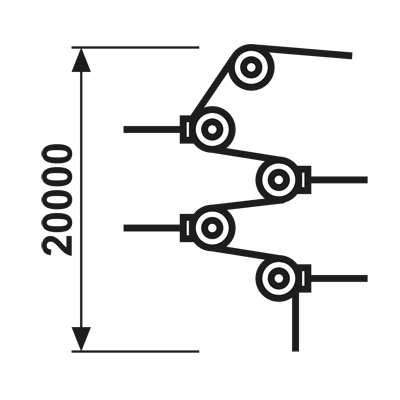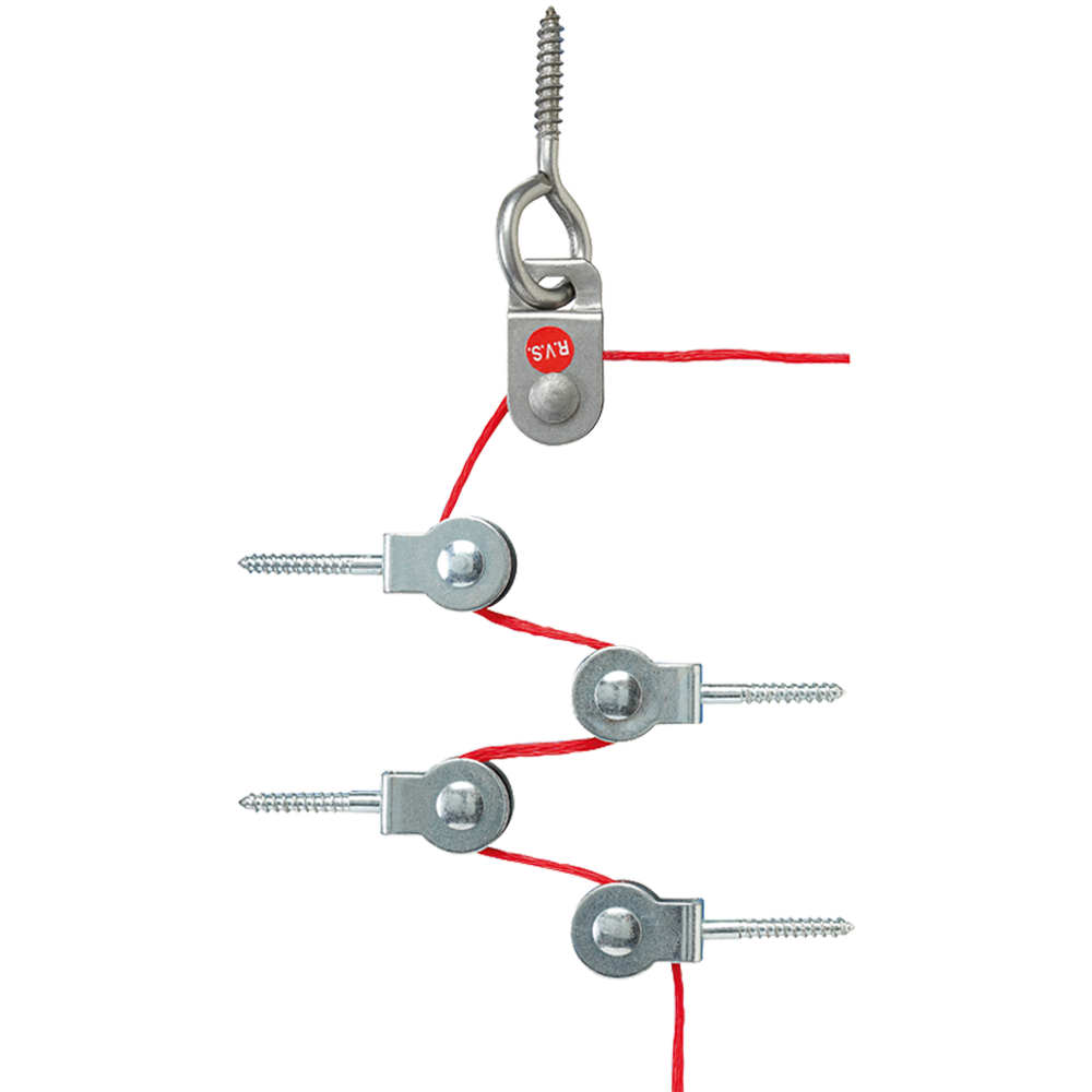 Das Set ist für eine Umlauflänge bis 20 Metern vorgesehen. Vom Zugschalter wird die Zugschnur über Block- und Vogelrollen umlaufend durch den Raum geführt. Das Ende bildet die Zugfeder mit der Ringschraube. Montagehöhe für die Zugschnur ist 0,40 m über dem Fußboden.
