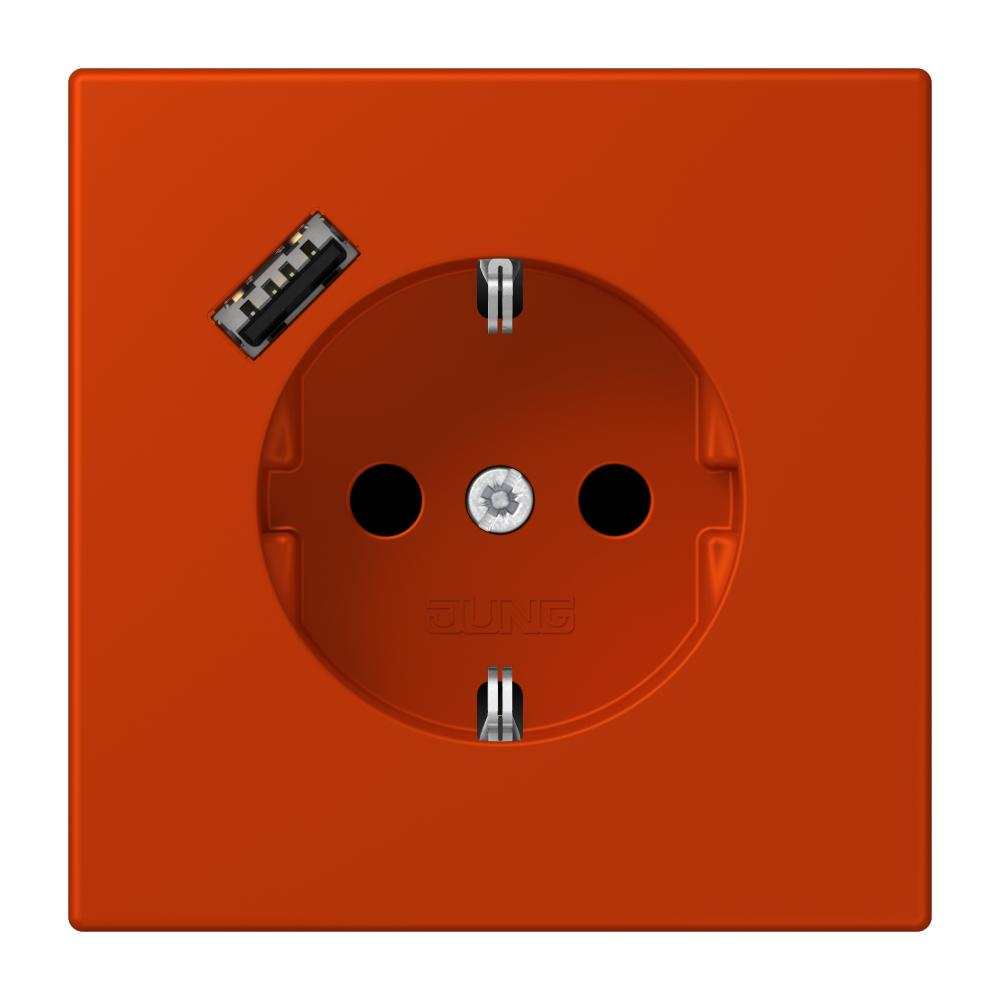 SCHUKO® socket, 16 A 250 V ~, with USB charger (JUNG Quick Charge®), 1 x type A, Safety Plus, LS range, rouge vermillon 59 (4320A)