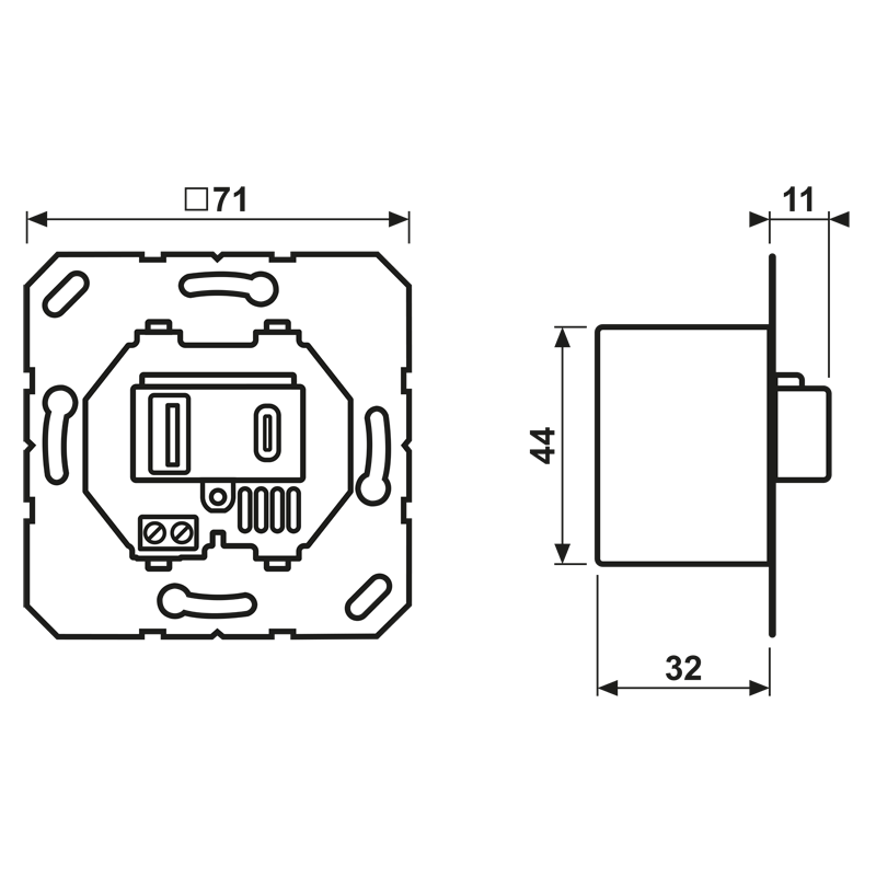 - Installation in flush box with dimensions according to DIN 49073