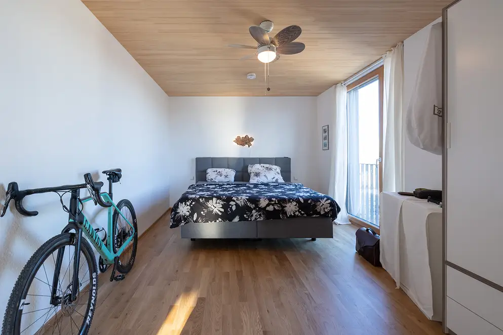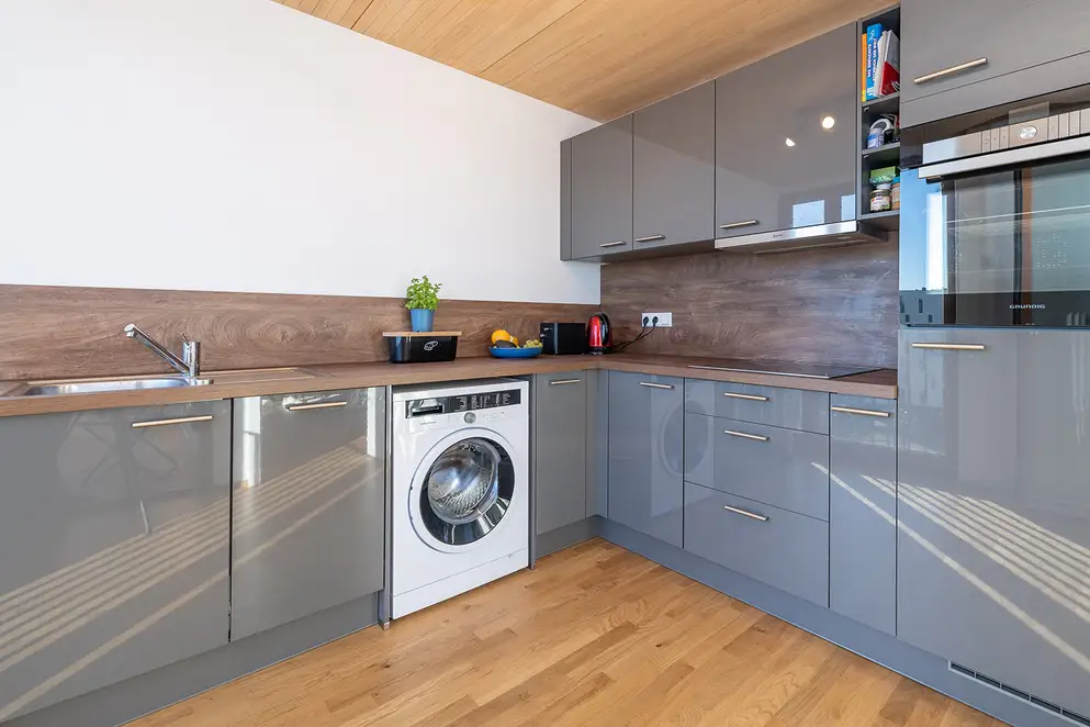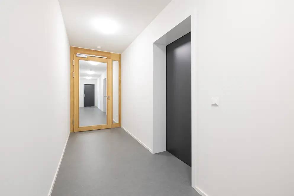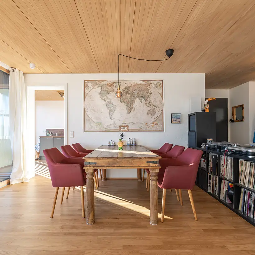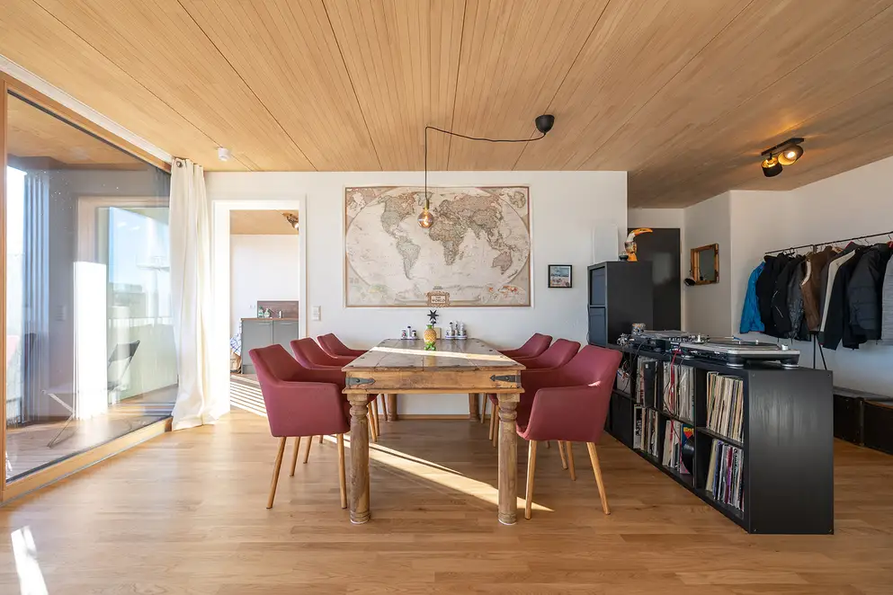 The apartments are naturally also strongly characterised inside by the wood material. For the ceilings, the planners from Weissenrieder Architekten BDA chose a domestic silver fir. Despite the complete wood building method with visible wooden ceilings, all fire protection requirements are met. The electrical equipment for the apartments used the AS 500 range from JUNG in white. The range stands for function and functionality and is thus ideally suited to the reduced, simple design of the property.Â