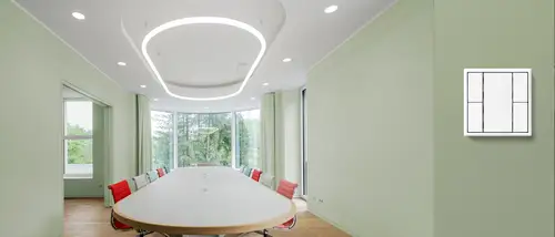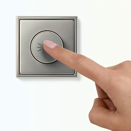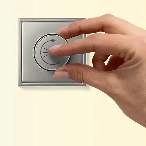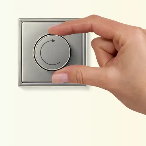 Switching, dimming, setting colour temperature: the DALI control units enable all of this with compatible lamps for up to 28 DALI-2 devices. The use of this technology is preferred in commercial properties such as offices. The regular centre plates for rotary dimmers fit on the DALI rotary controllers in the design of the AS, A, CD and LS ranges.