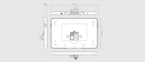 Flat device, extensive equipment: on the back of the Smart Panel 8 all the important connections are available. Right at the bottom on the edge of the touch panel there is the HOME button. The Smart Panel 8 can be installed in many existing boxes (retrofit).
