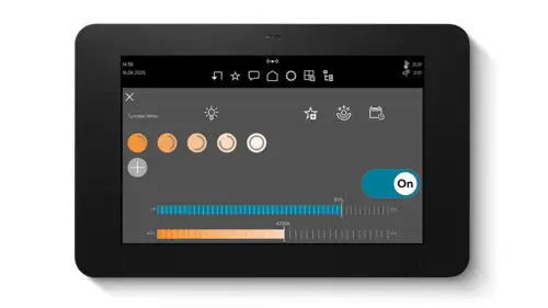 Thanks to the proximity sensor, the Smart Panel 8 wakes up from standby as soon as you are standing there. That saves energy, but all functions are still directly available.