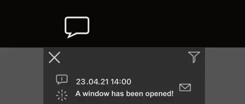 Important events are displayed as pop-up messages. If needed, an acoustic signal can also sound. Pop-up messages are displayed on the panel or a smartphone.