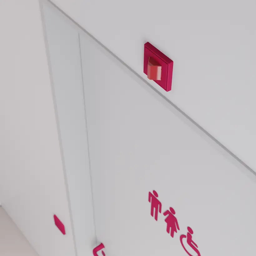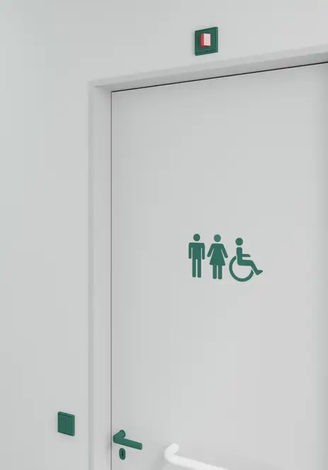 The emergency call system has a modular design. Pull cord push-button, call button, emergency signal and reset button are available in Les Couleurs® Le Corbusier®. The various lightness coefficients of the 63 colours create a high luminance contrast between the wall and the switch.