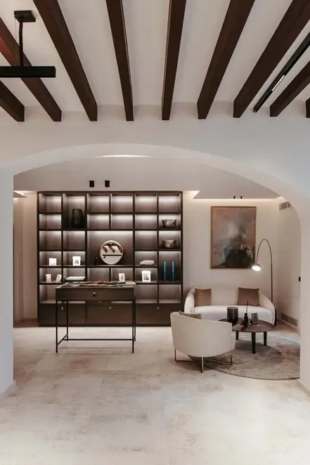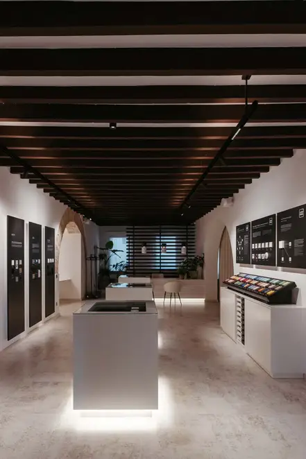 The studio in Rambla 8, designed by architect Gülçin Yilmaz, presents the entire range of JUNG products and solutions - from the design classic LS 990 to the smart home system JUNG HOME - on an area of around 200 square metres. The interplay of innovative technology and timeless design is reflected in the architecture of the showroom, where elements of the original building, such as stones and beams, harmonise with minimalist lines and colours.