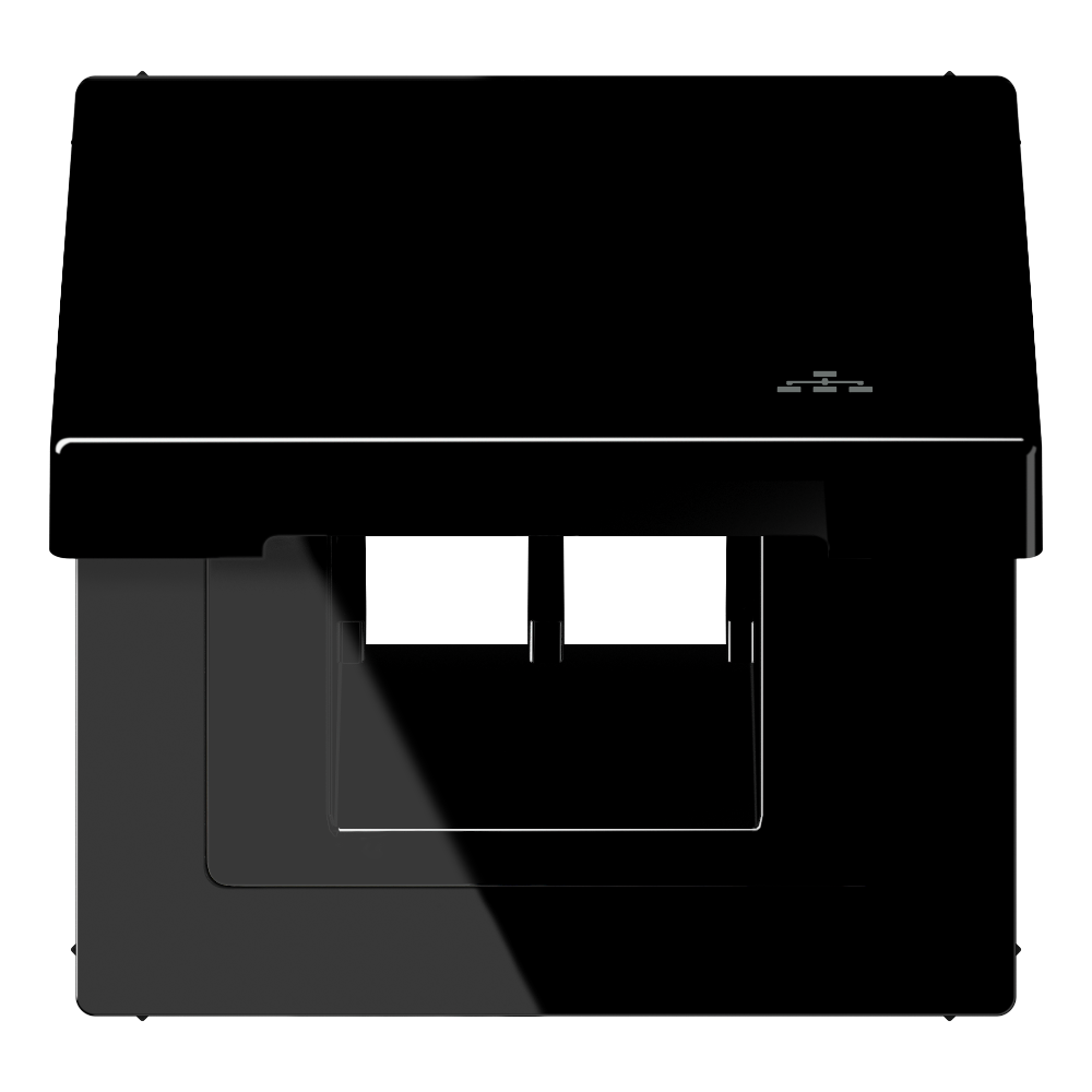 Hinged lid with spring, with symbol "LAN", thermoplastic, LS range, black