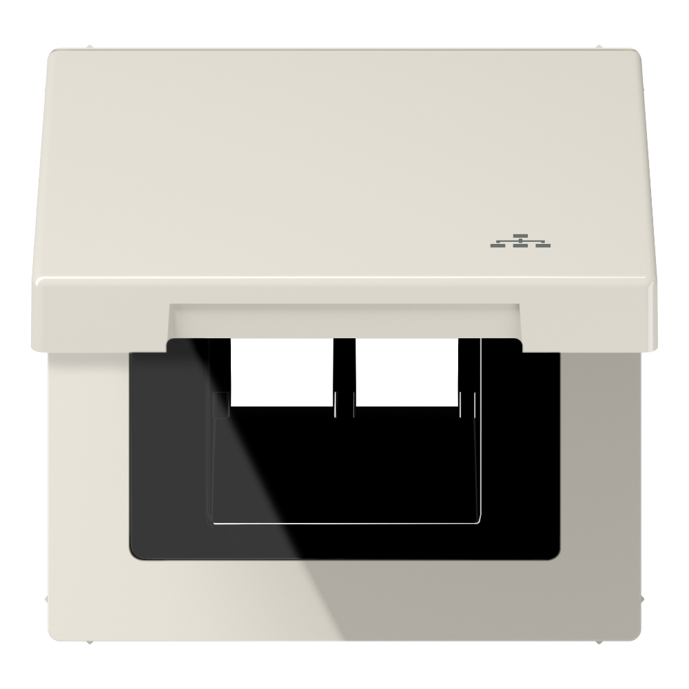 Hinged lid with spring, with symbol "LAN", thermoplastic, LS range, ivory