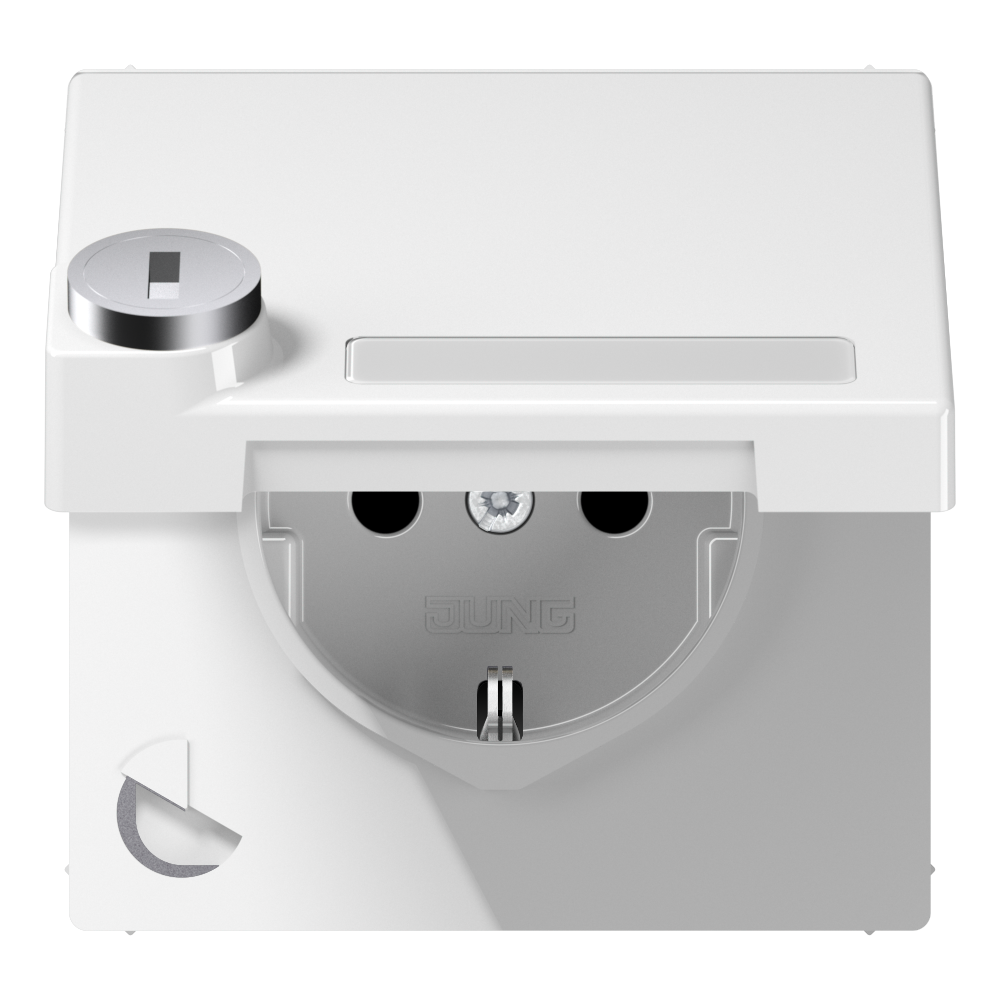 SCHUKO® socket, 16 A 250 V ~, with inscription field, Safety Plus, hinged lid, with safety lock, thermoplastic, LS range, white