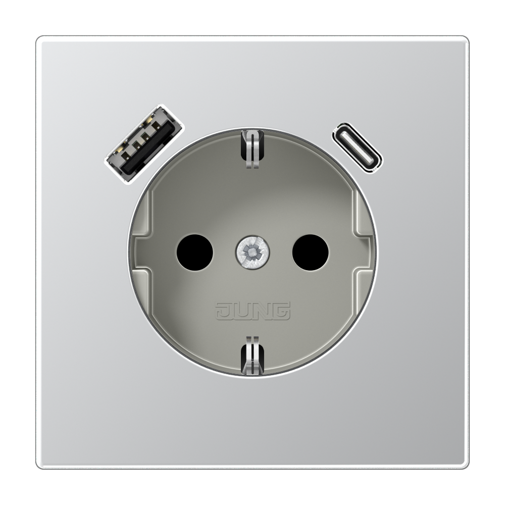 SCHUKO® socket, 16 A 250 V ~, with USB charger, 1 x type A + 1 x type C, Safety Plus, LS range, aluminium