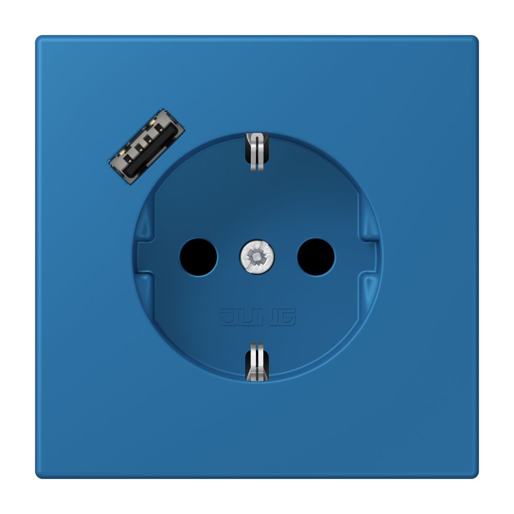 SCHUKO® socket, 16 A 250 V ~, with USB charger, 1 x type A, Safety Plus, LS range, bleu céruléen 31 (32030)