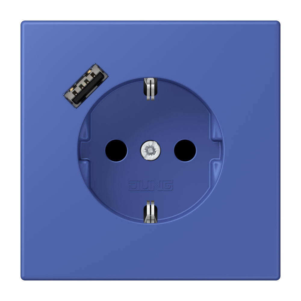 SCHUKO® socket, 16 A 250 V ~, with USB charger, 1 x type A, Safety Plus, LS range, bleu outremer 31 (32020)
