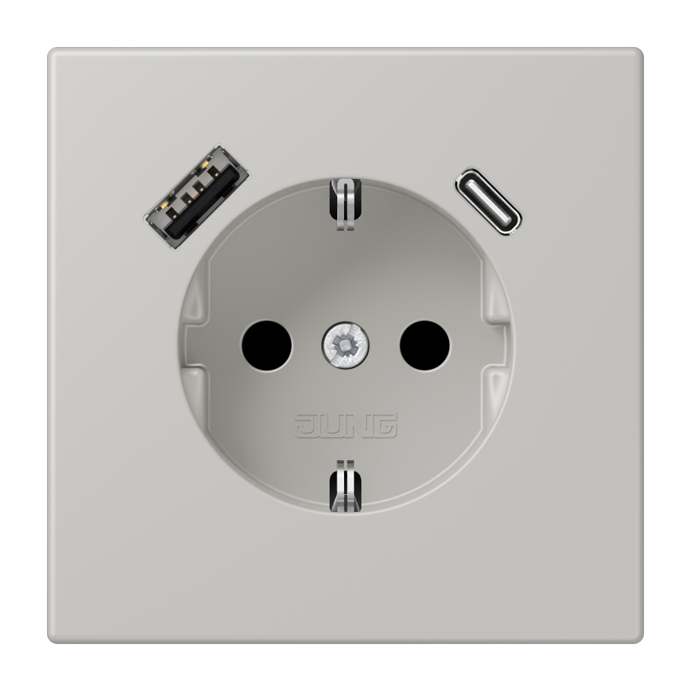 SCHUKO® socket, 16 A 250 V ~, with USB charger, 1 x type A + 1 x type C, Safety Plus, LS range, gris clair 31 (32013)
