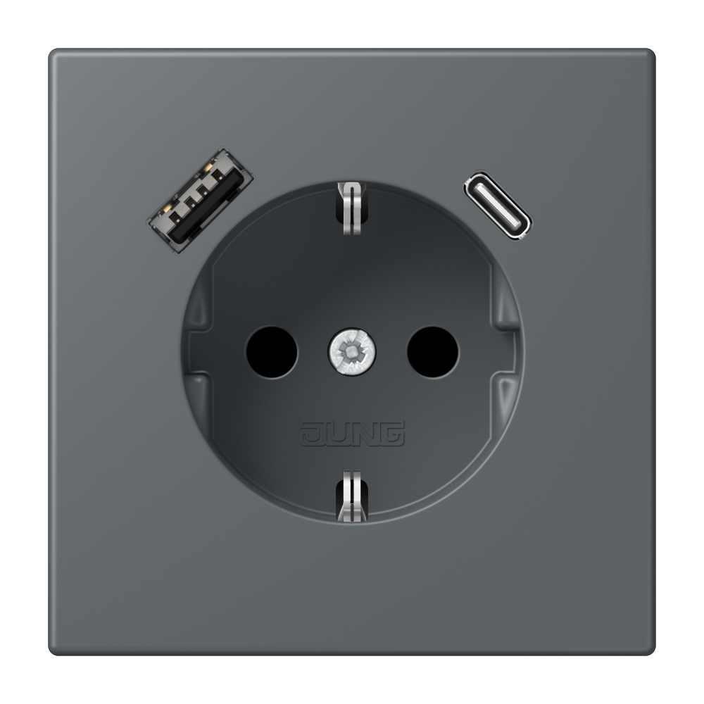 SCHUKO® socket, 16 A 250 V ~, with USB charger, 1 x type A + 1 x type C, Safety Plus, LS range, gris foncé 31 (32010)