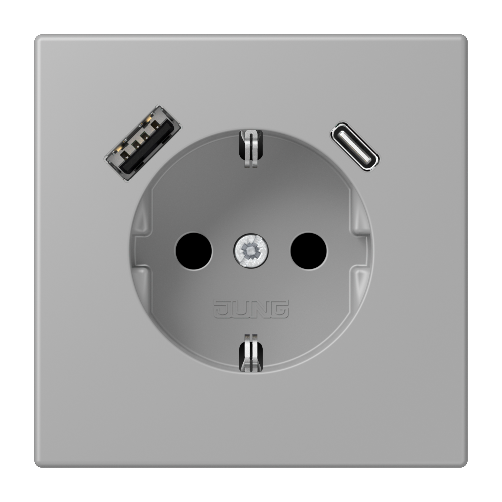 SCHUKO® socket, 16 A 250 V ~, with USB charger, 1 x type A + 1 x type C, Safety Plus, LS range, gris moyen (32012)
