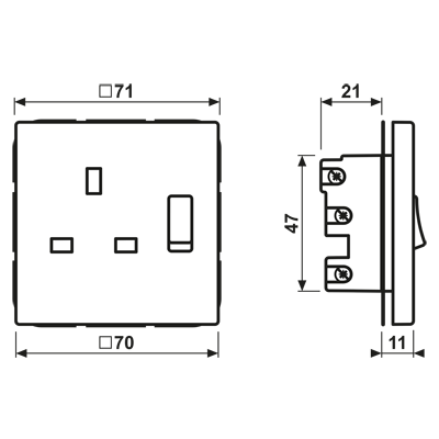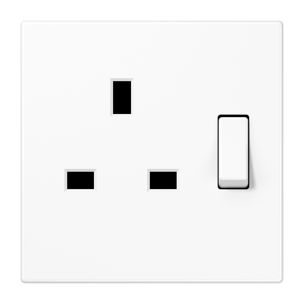 Switched socket, British Standard, 13 A 250 V ~, with contact protection, screw terminals, LS range, white