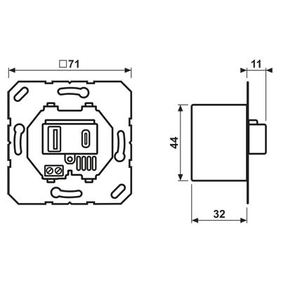 - Installation in flush box with dimensions according to DIN 49073