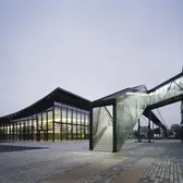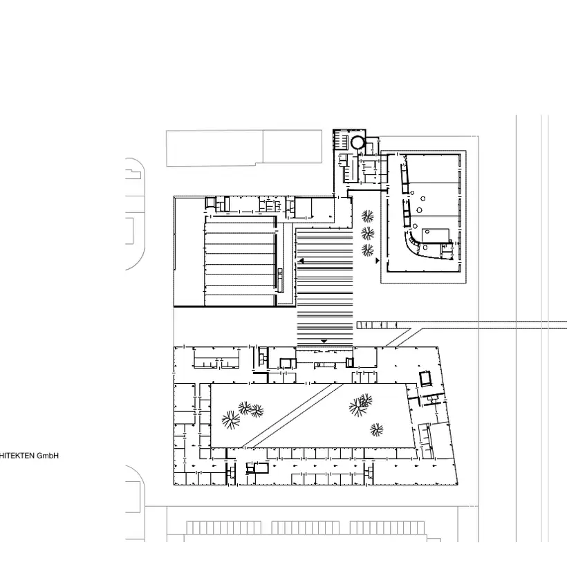 The area around the company is exceptionally diverse and includes single-family homes, industrial buildings, shopping centres, a rail yard and car parks. At the same time, the existing buildings, with only two to four storeys, are all limited in height. The Stuttgart architects proposed constructing three buildings with separate uses for administration, events and presentations as well as a footbridge. The advantage of dividing the buildings into functions is that it creates a single space devoted to meetings and work, another to exchanges and conferences with customers and a third space for trade fairs and exhibitions. The open plaza created by the new buildings creates a link between the visitor and customer centre, the auditorium and the office building, while also serving as the striking centrepiece of the new complex.