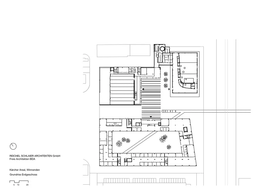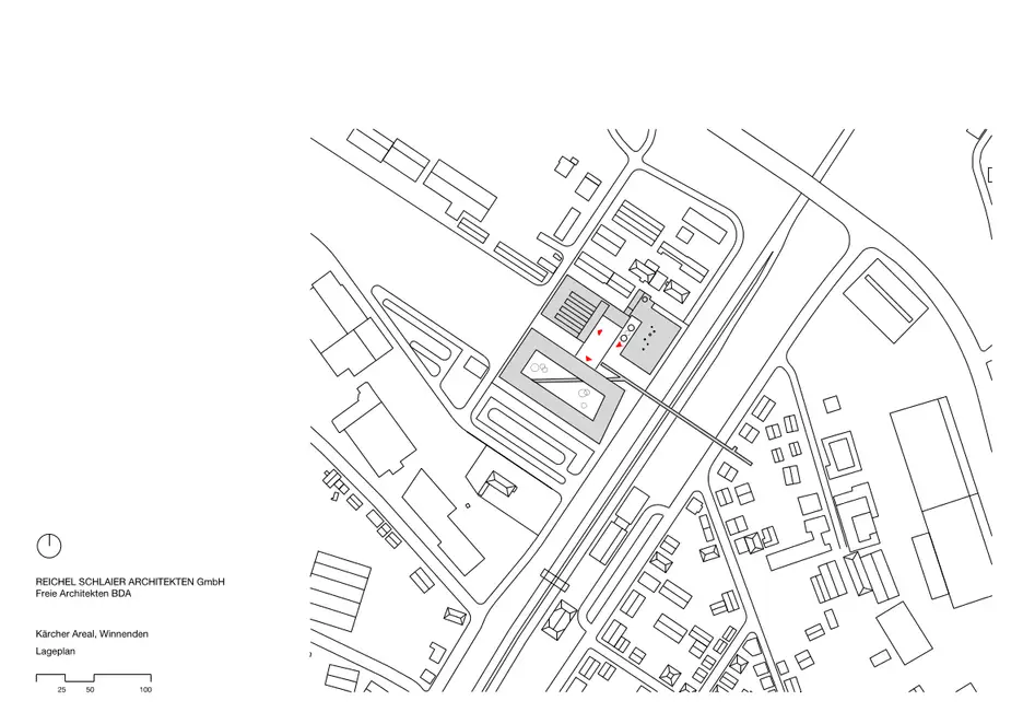 In recent years, this global cleaning equipment company has experienced rapid growth. Space for staff was shrinking, leading Kärcher to acquire the 130,000 square metre grounds of a former brickworks for future expansions. To this end, the company held an international design competition at the end of 2012 and subsequently awarded the contract to Reichel Schlaier Architekten of Stuttgart for their winning design.