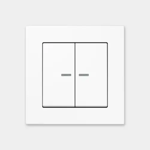 El mecanismo de sistema determina la función principal: iluminación, persianas o calefacción. Se pueden asignar una o dos funciones al pulsador de 1 fase y hasta cuatro al pulsador de 2 fases. En la app se configuran los pulsadores JUNG HOME. Todas las teclas incluyen un LED de varios colores para la indicación de estado. También es posible un modo nocturno.
