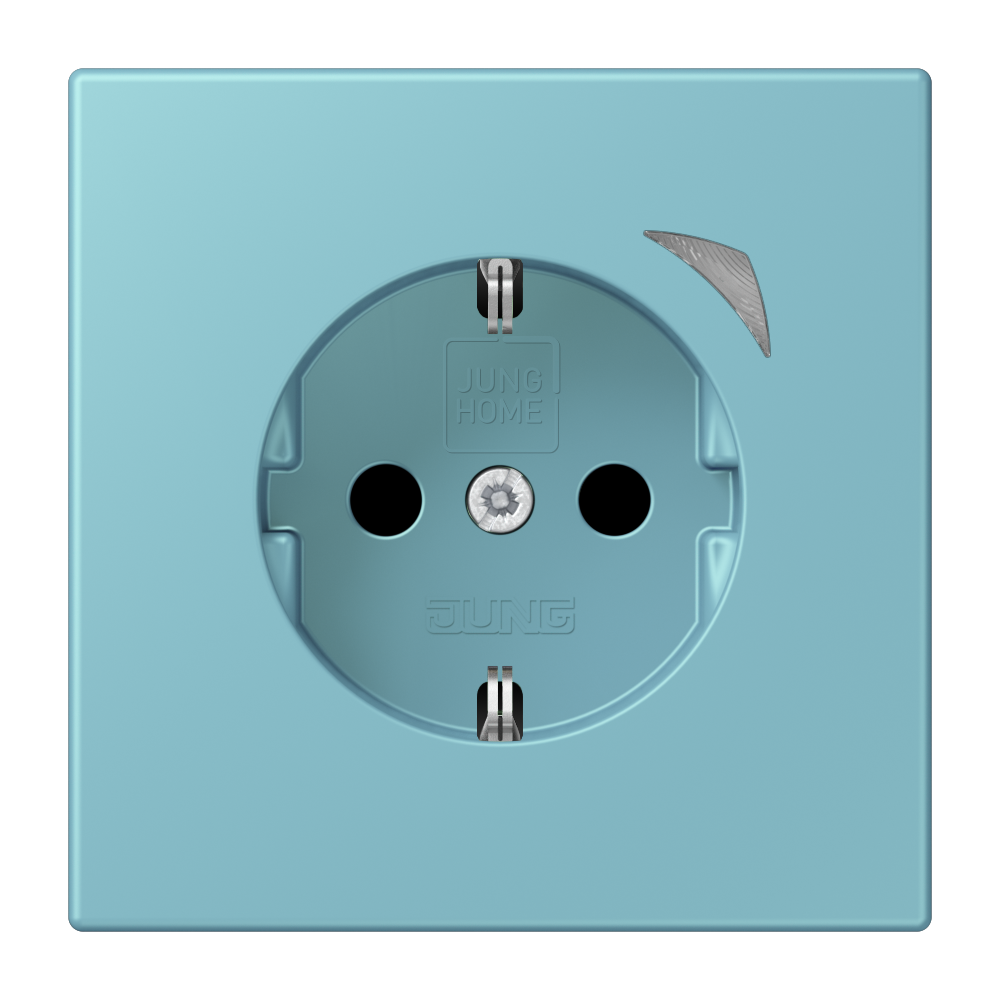 Enchufe SCHUKO® JUNG HOME Energy, 16 A 250 V ~, con indicación de funcionamiento, Safety Plus, Serie LS, céruléen moyen (32032)