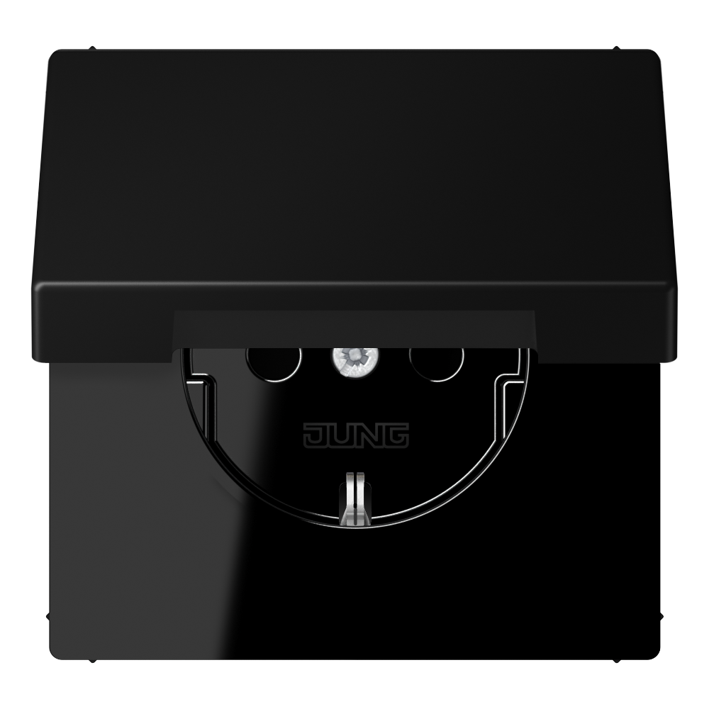 Enchufe SCHUKO®, 16 A 250 V ~, Safety Plus, tapa abatible, termoplástico lacado, Serie LS, negro mate