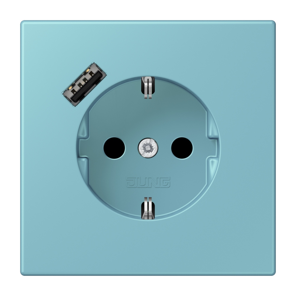 Enchufe SCHUKO®, 16 A 250 V ~, con cargador USB (JUNG Quick Charge®), 1 x tipo A, Safety Plus, Serie LS, céruléen moyen (32032)