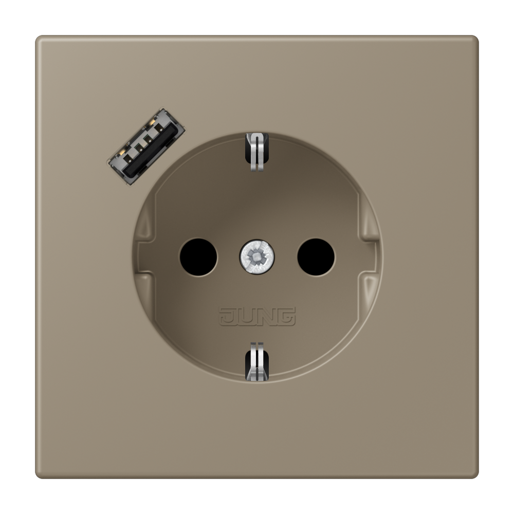 Enchufe SCHUKO®, 16 A 250 V ~, con cargador USB (JUNG Quick Charge®), 1 x tipo A, Safety Plus, Serie LS, ombre naturelle moyenne (32141)