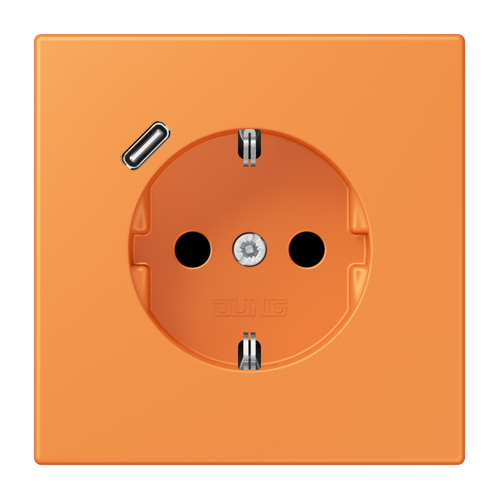 Enchufe SCHUKO®, 16 A 250 V ~, con cargador USB (JUNG Quick Charge®), 1 x tipo C, Safety Plus, Serie LS, orange clair (32081)
