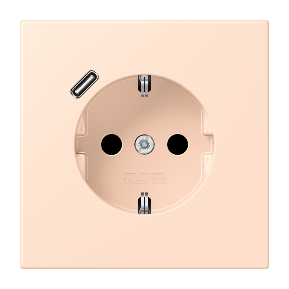 Enchufe SCHUKO®, 16 A 250 V ~, con cargador USB (JUNG Quick Charge®), 1 x tipo C, Safety Plus, Serie LS, rose pâle (32091)