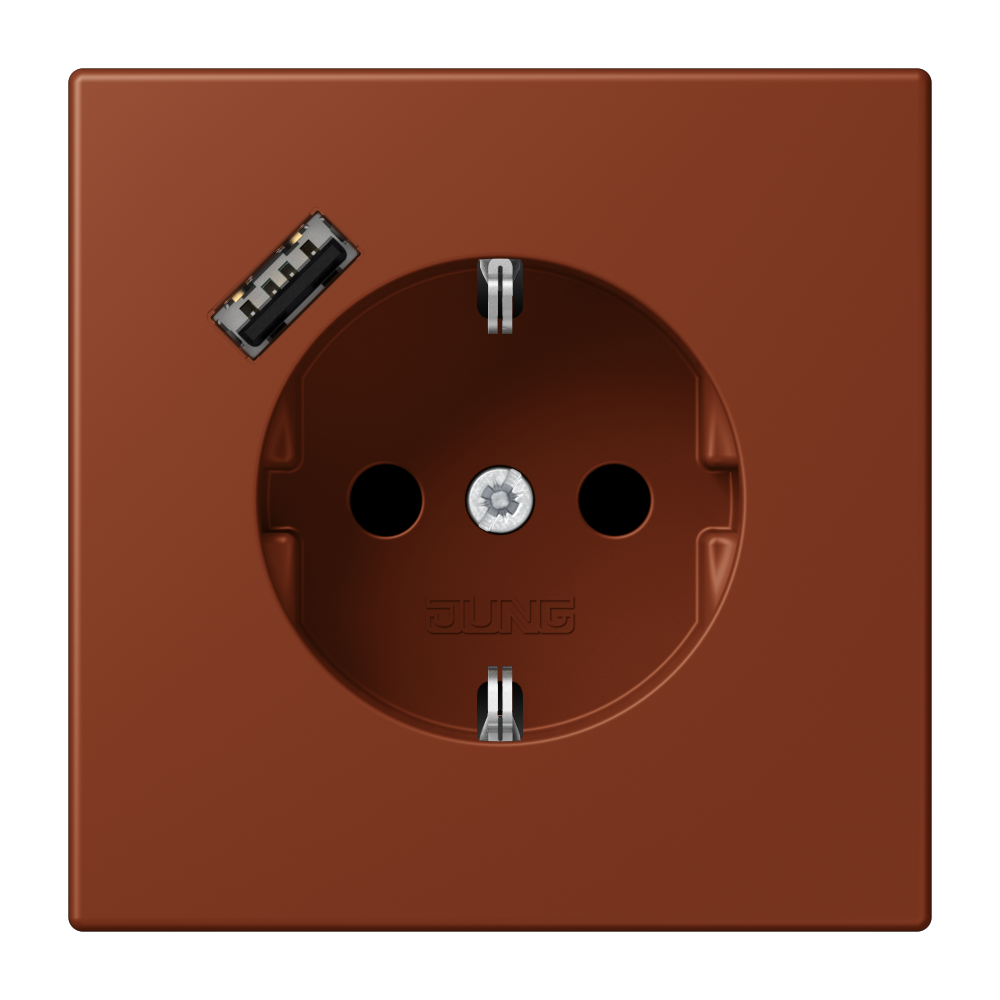 Enchufe SCHUKO®, 16 A 250 V ~, con cargador USB (JUNG Quick Charge®), 1 x tipo A, Safety Plus, Serie LS, terre sienne brûlée 59 (4320D)