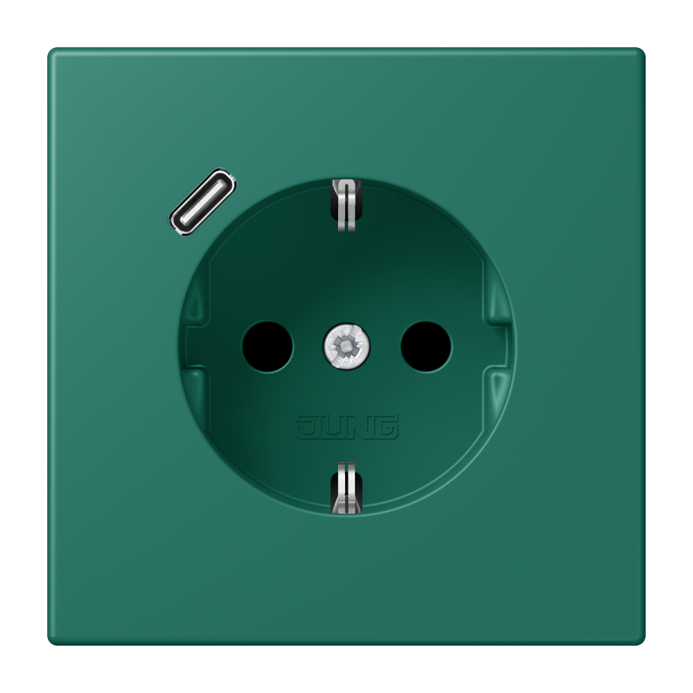Enchufe SCHUKO®, 16 A 250 V ~, con cargador USB (JUNG Quick Charge®), 1 x tipo C, Safety Plus, Serie LS, vert anglais (32040)