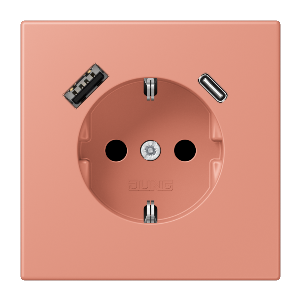 Enchufe SCHUKO®, 16 A 250 V ~, con cargador USB, 1 x tipo A + 1 x tipo C, Safety Plus, Serie LS, l’ocre rouge moyen (32111)