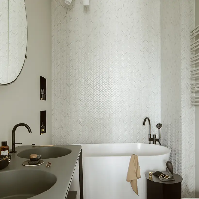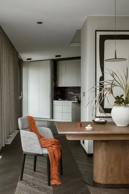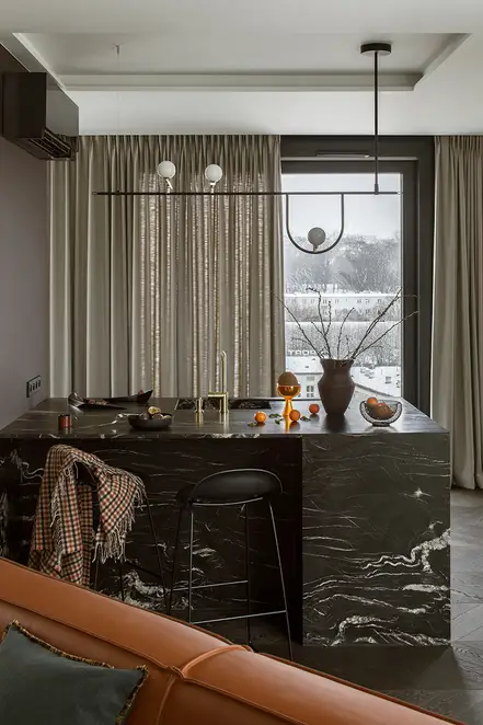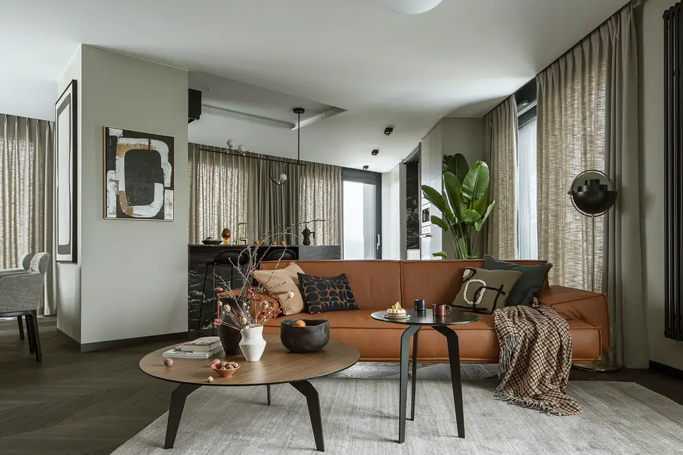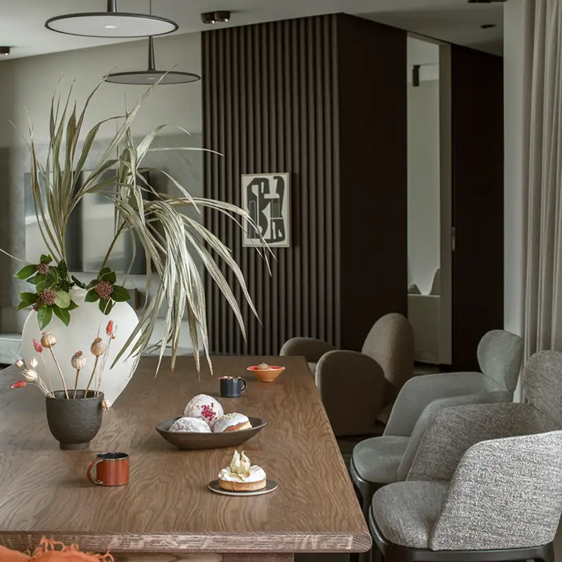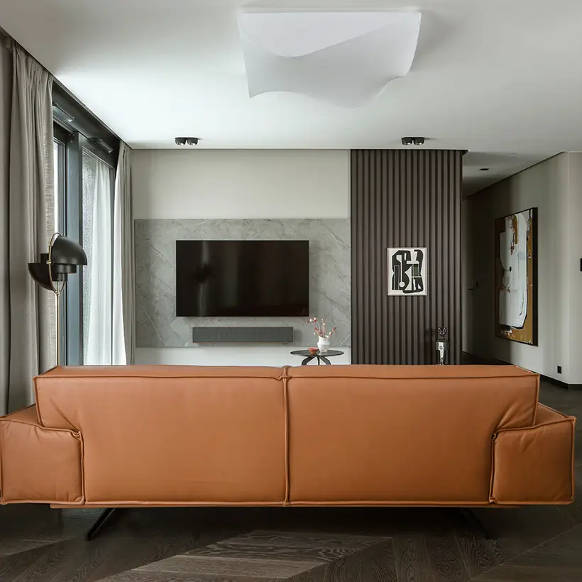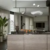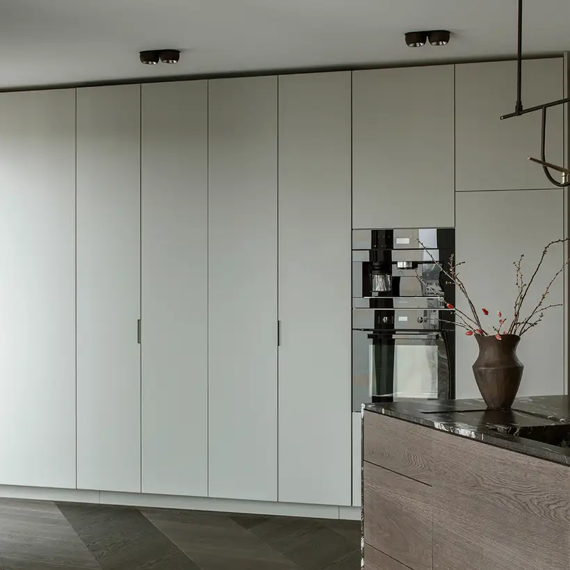 Experience the city from a different perspective – that was the goal of the interior designer Patrycja Suszek-Rączkowska from Studio Poco Design, as she took on the task of redesigning an apartment above the roofs of the city. The 150 m² apartment is in one of the new apartment blocks in Warsaw. The panoramic view, but also the concept to meld the interior spaces with the near and far surroundings are what make the spatial experience.